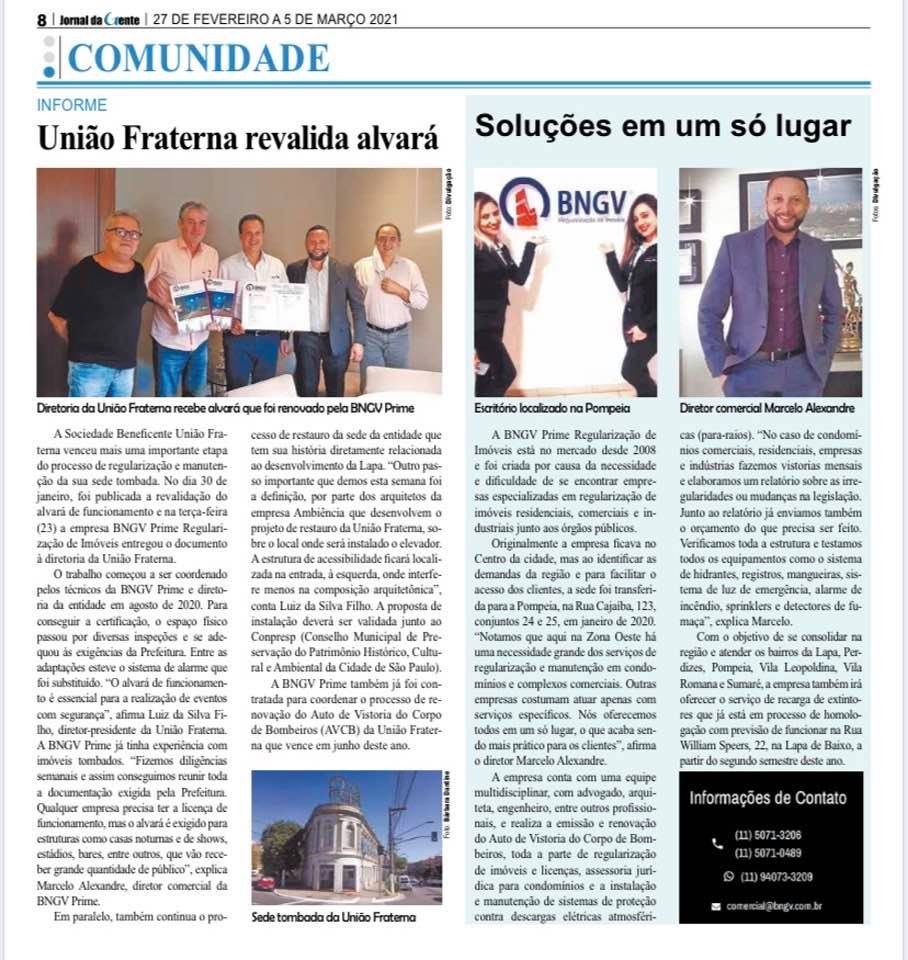 É um orgulho fazer parte de um trabalho tão especial!! A equipe BNGV PRIME Agradece pela confiança. Artigo anteriorA importância do AVCB para evitar incêndios